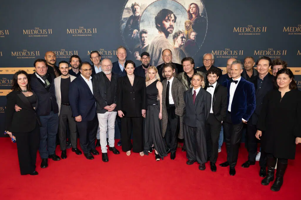 Köln, 16. Dezember 2025 – Das große Kino-Epos DER MEDICUS 2 feierte gestern im Kölner CINEDOM seine Weltpremiere. Aus dem exzellenten Cast waren Tom Payne, Emily Cox, Áine Rose Daly, Liam Cunningham, Malick Bauer, Francis Fulton-Smith, Jaouhar Ben Ayed, Rosie Boore, Evelyn Craven und Máté Haumann zu Gast auf dem Roten Teppich. Zusammen mit Regisseur und Produzent Philipp Stölzl, den Produzenten Wolf Bauer, Till Derenbach und Michael Souvignier (Zeitsprung Pictures), Produzent Sebastian Werninger (UFA Fiction) und Executive Producer David Kehrl(Constantin Film) stellten sie sich dem Blitzlichtgewitter und zahlreichen Fans.