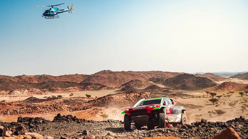 Zurück auf der Erfolgsspur: Die „Dakar“-Titelverteidiger Yazeed Al-Rajhi und Timo Gottschalk haben mit Tagesrang drei bei der Rallye Dakar eine erste Duftmarke gesetzt. Auf dem extrem langen, anstrengenden und steinigen Teilstück von Yanbu nach al-‚Ula starteten sie nach dem Zeitverlust vom Vortag auf der nicht gerade idealen Position 27, steckte lange Zeit im Staub fest – machten aber trotz kalkuliertem Risiko Boden gut – rund fünf Minuten auf die neuen Gesamtführenden Nasser Al-Attiyah/Fabian Lurquin (QAT/BEL, Dacia). Die Tageswertung war fest in Toyota-Hand: die Top Fünf trugen das Badge des japanische Herstellers, allen voran die Tagessieger Seth Quintero/Andrew Short (USA/USA), die lediglich 1:56 Minuten schneller waren als Al-Rajhi/Gottschalk.
