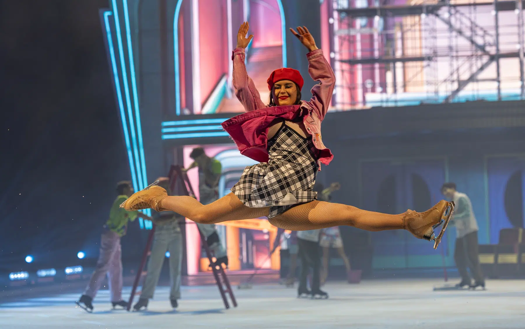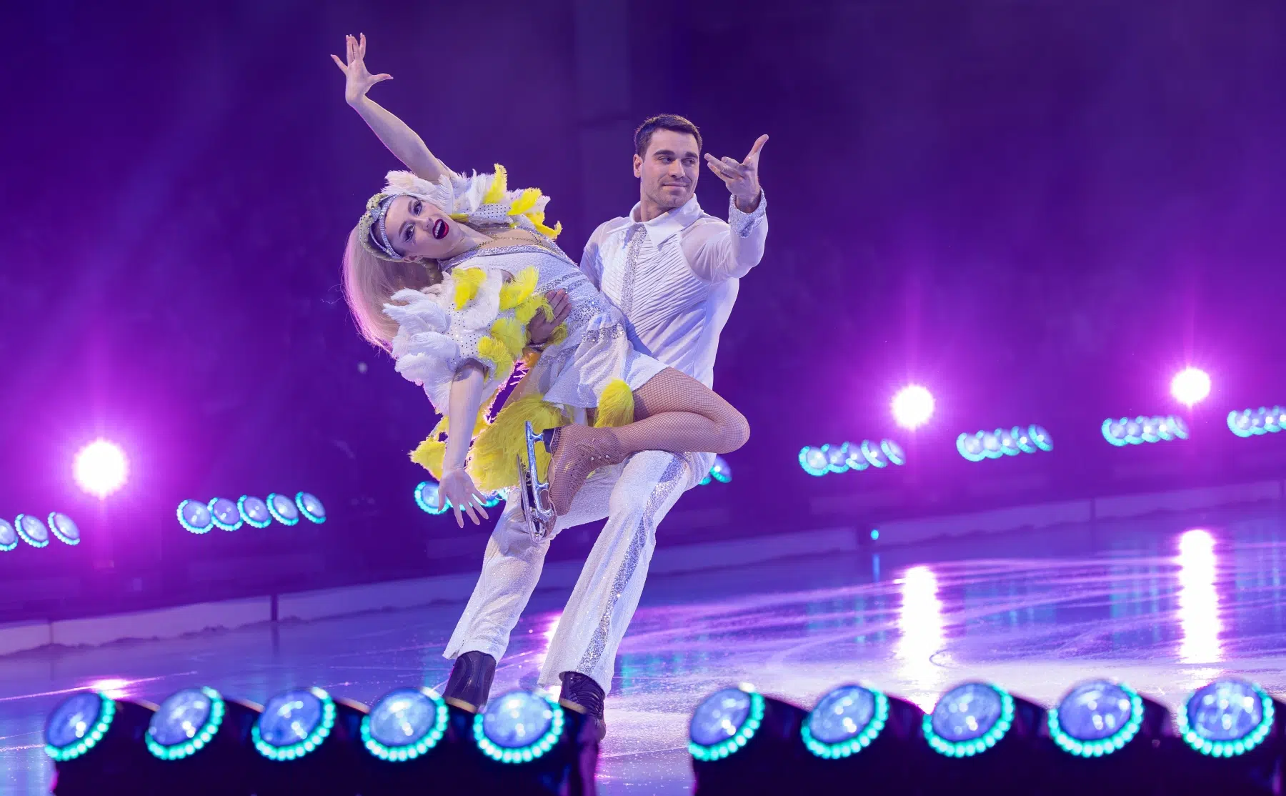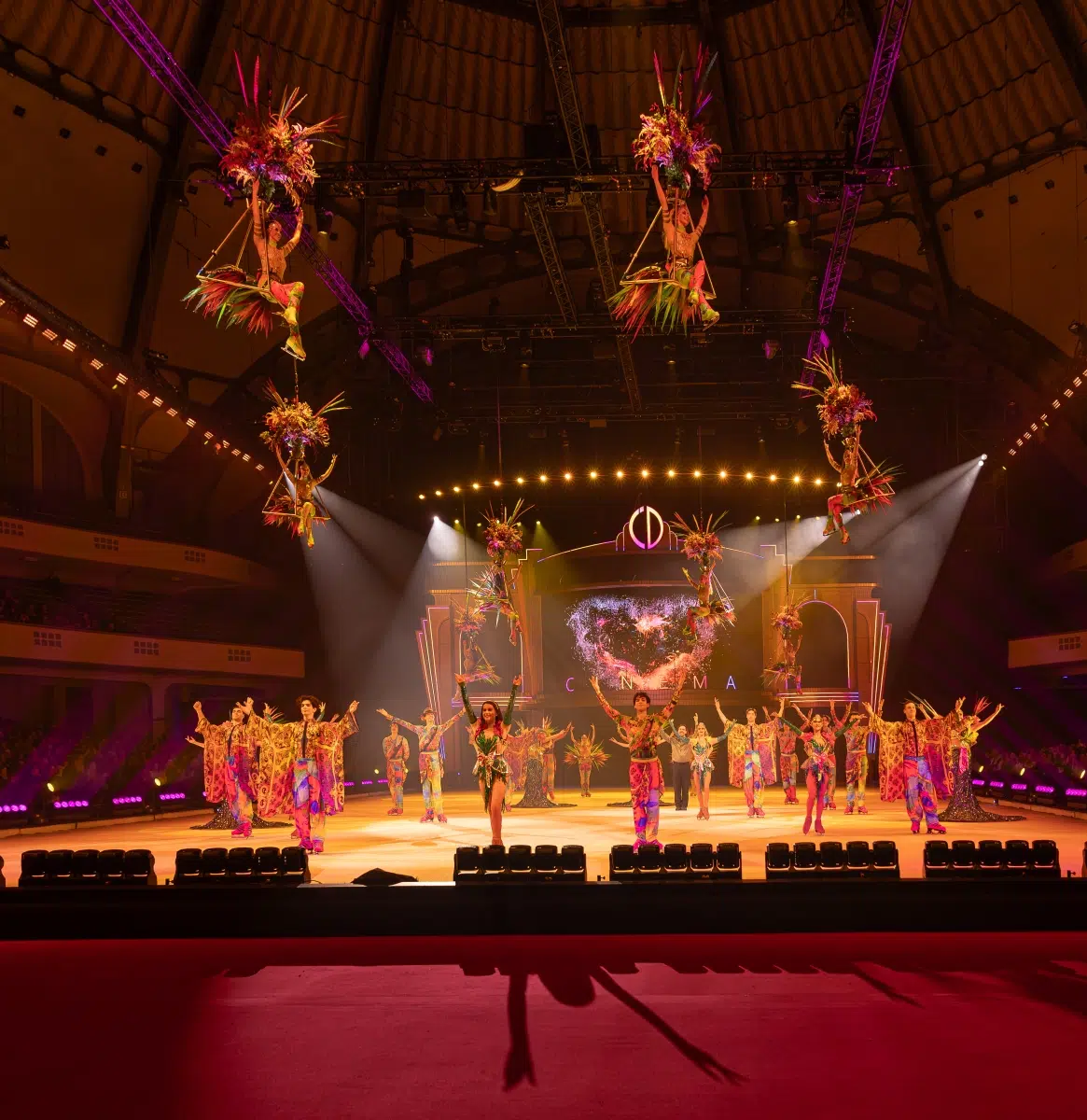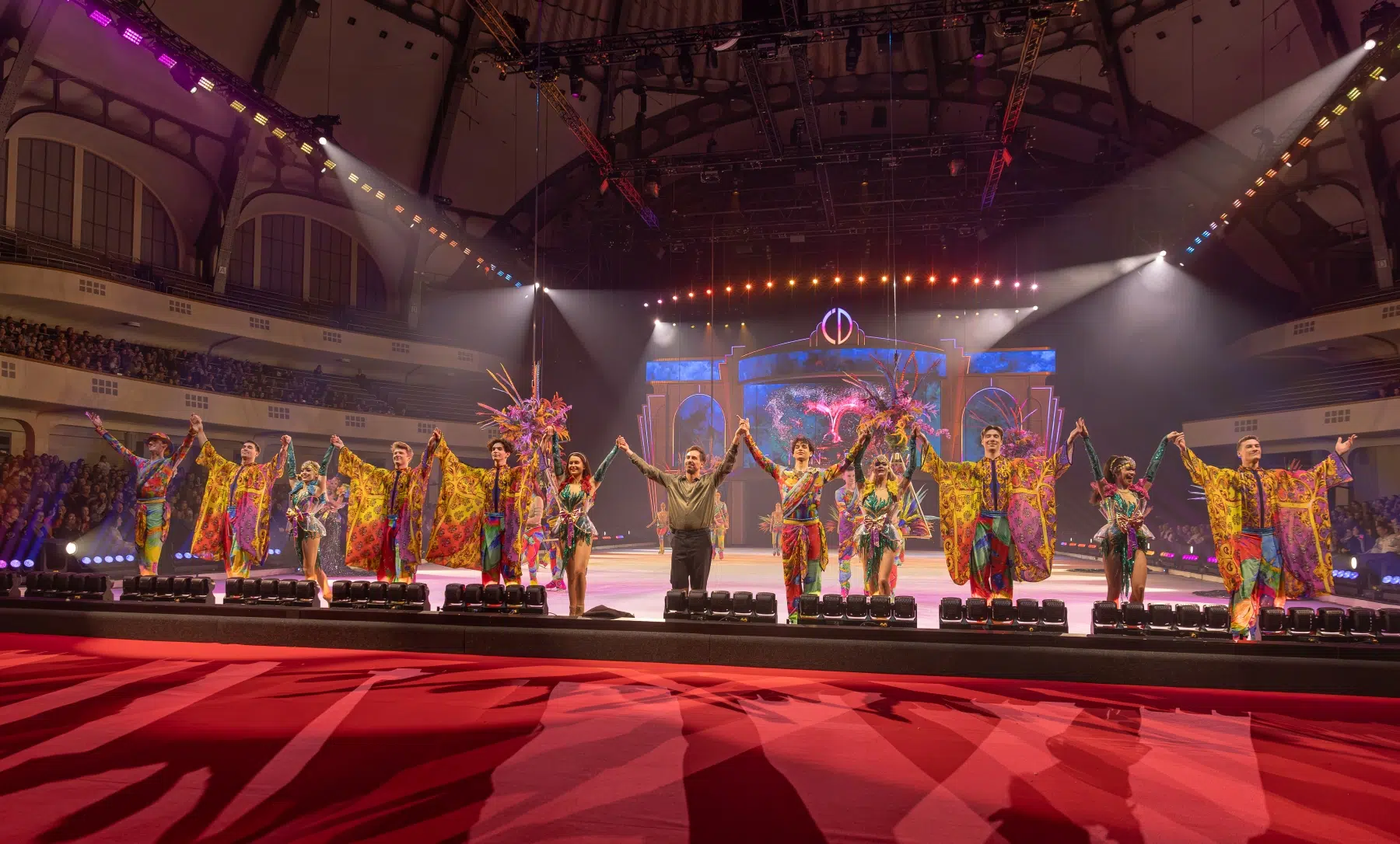 Schon beim Betreten der Festhalle war klar: Cinema Of Dreams will mehr sein als eine klassische Eisshow. Ein imposantes Bühnenbild, raffinierte Lichtinstallationen und großflächige Projektionen verwandelten die Arena in ein lebendiges Filmstudio. Die Inszenierung folgt einer klaren dramaturgischen Linie – wie ein Episodenfilm auf Kufen, der das Publikum durch verschiedene Filmgenres führt: von romantischen Liebesgeschichten über rasante Actionsequenzen bis hin zu märchenhaften Fantasiewelten.