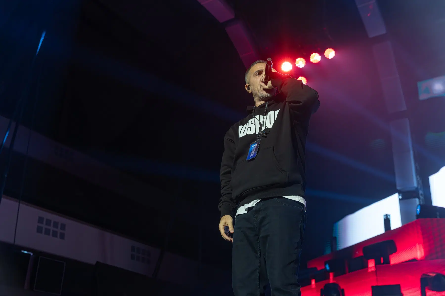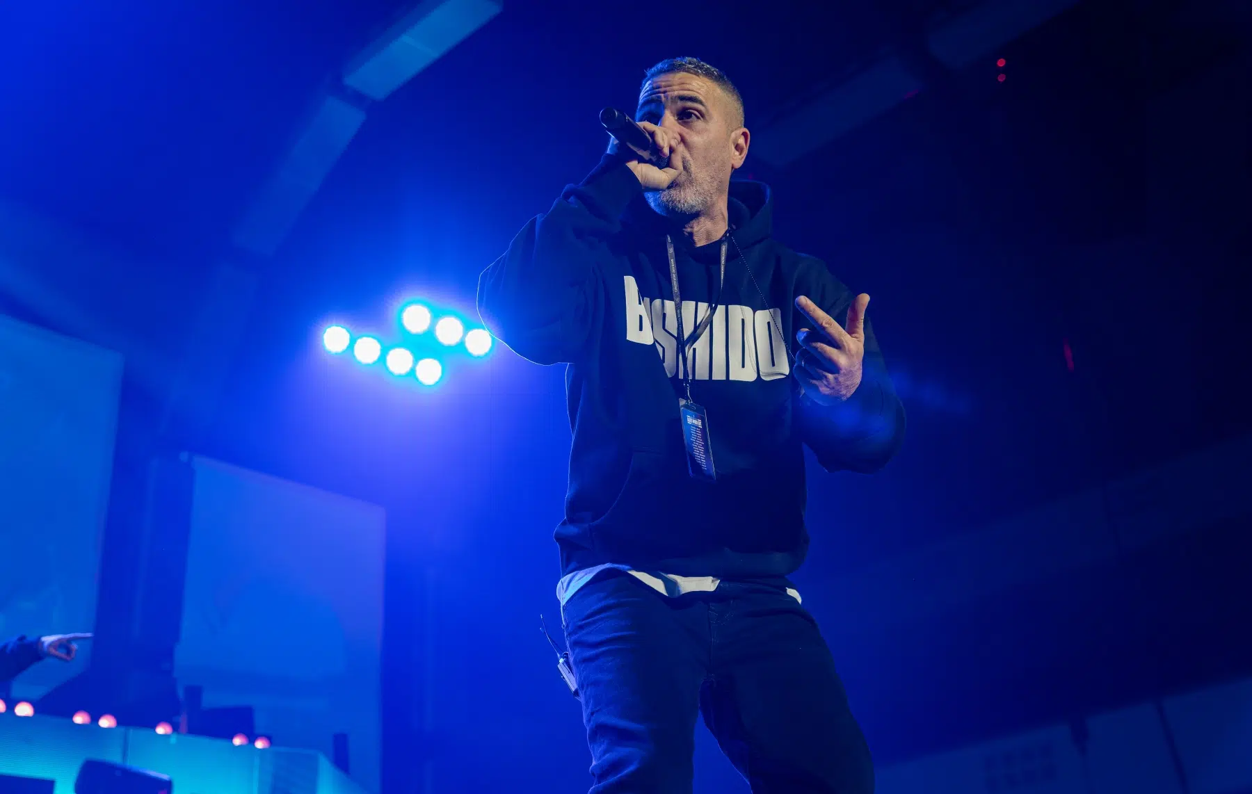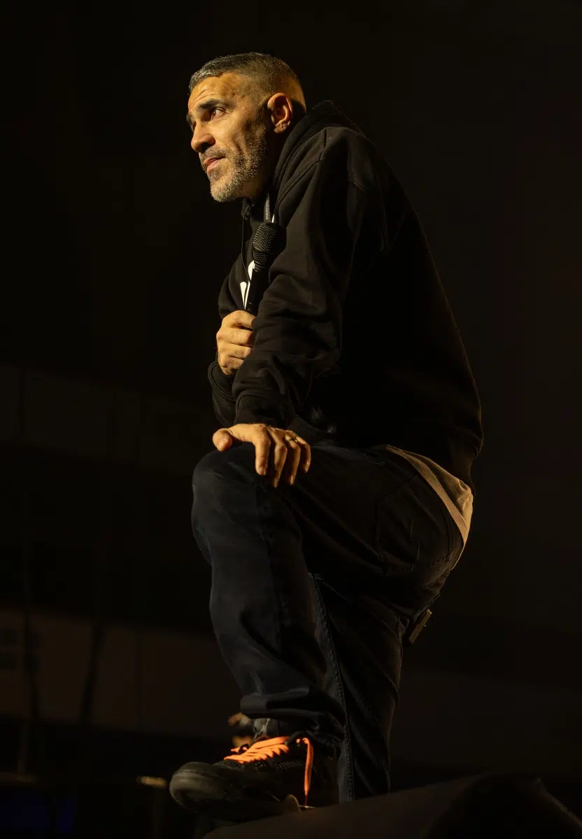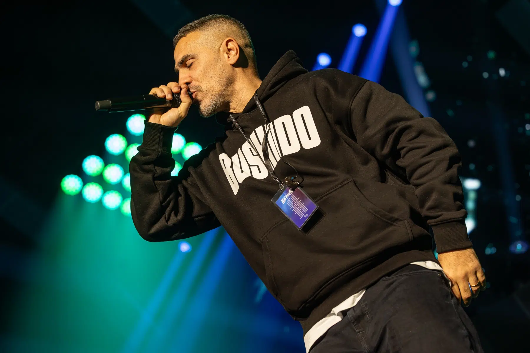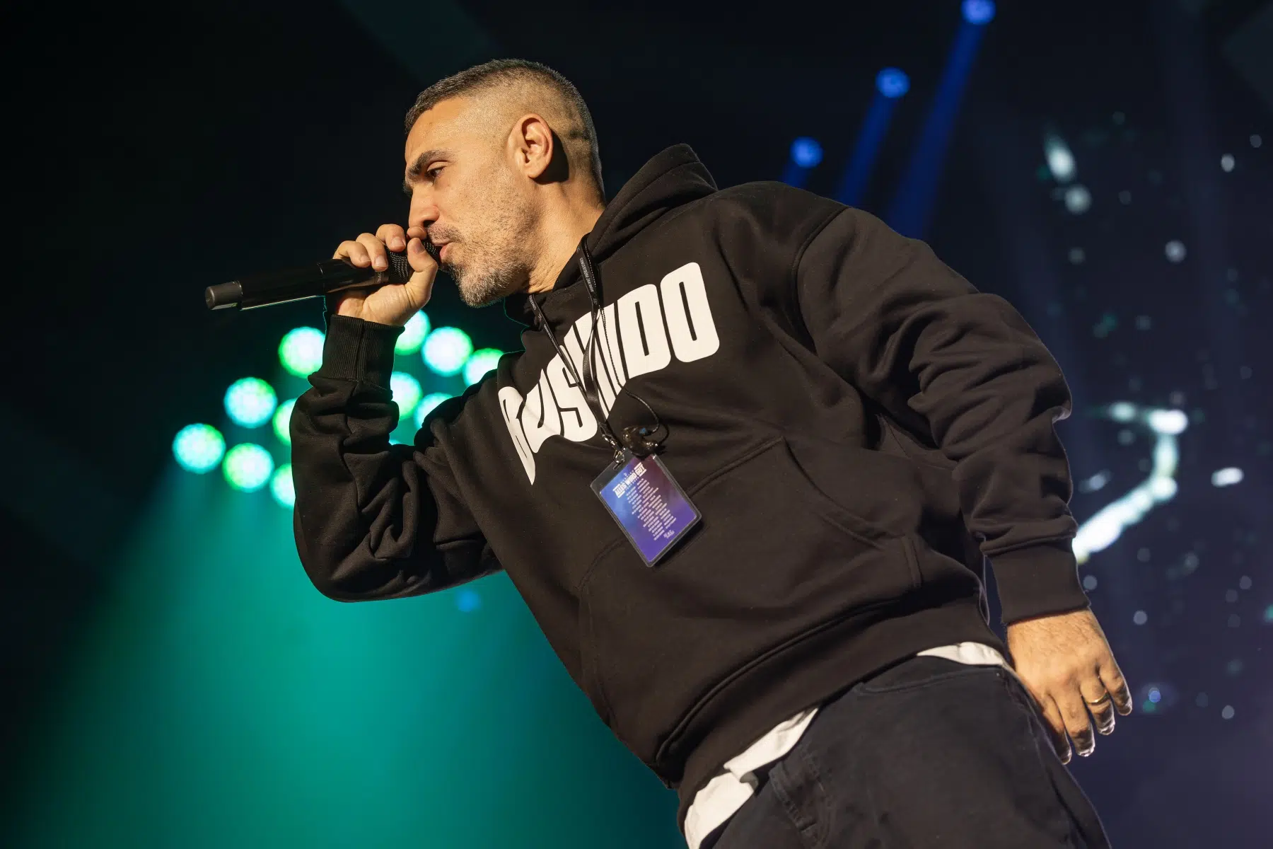 Der Abend beginnt mit einem Augenzwinkern und Symbolkraft: „Kleine Bushidos“ eröffnet das Set und schlägt sofort die Brücke zwischen Herkunft, Legacy und dem Blick zurück. Ohne lange Anlaufphase geht es mit „Wenn wir kommen“ und „Nie wieder“ direkt in die Konfrontation – hart, kompromisslos, laut. Die Halle ist von der ersten Minute an da.