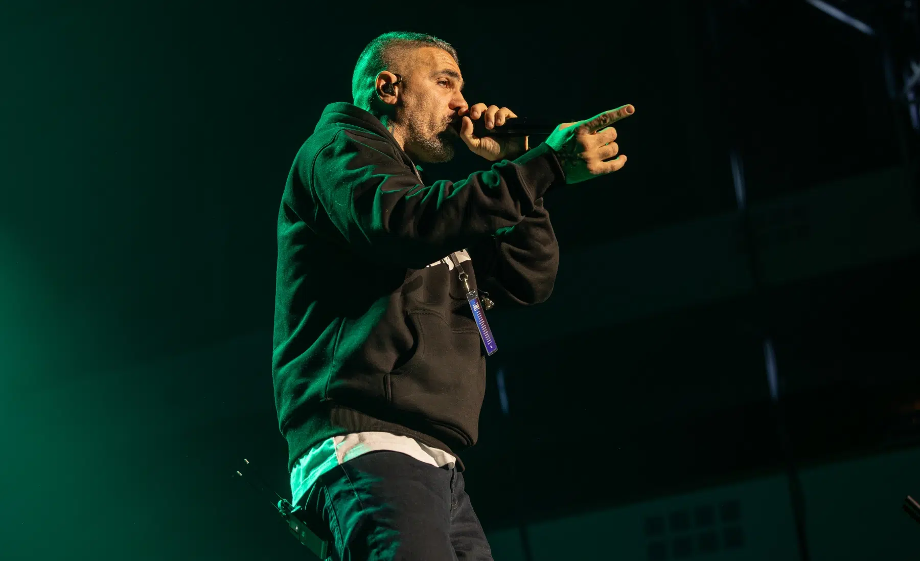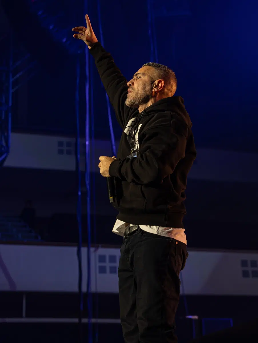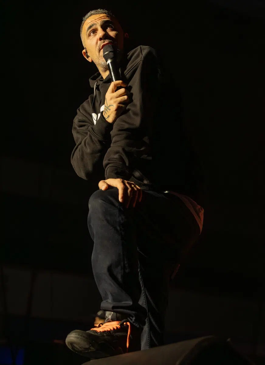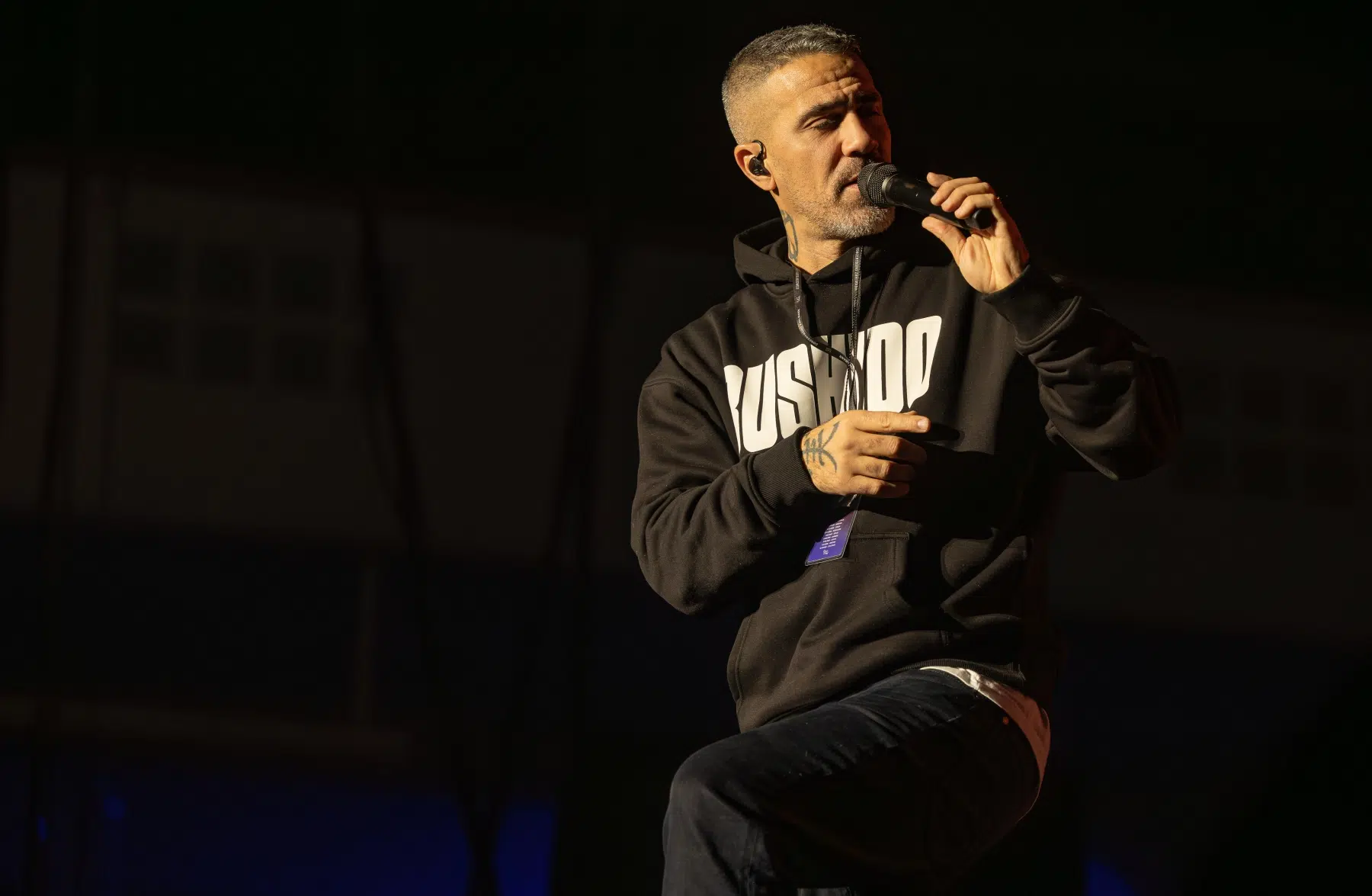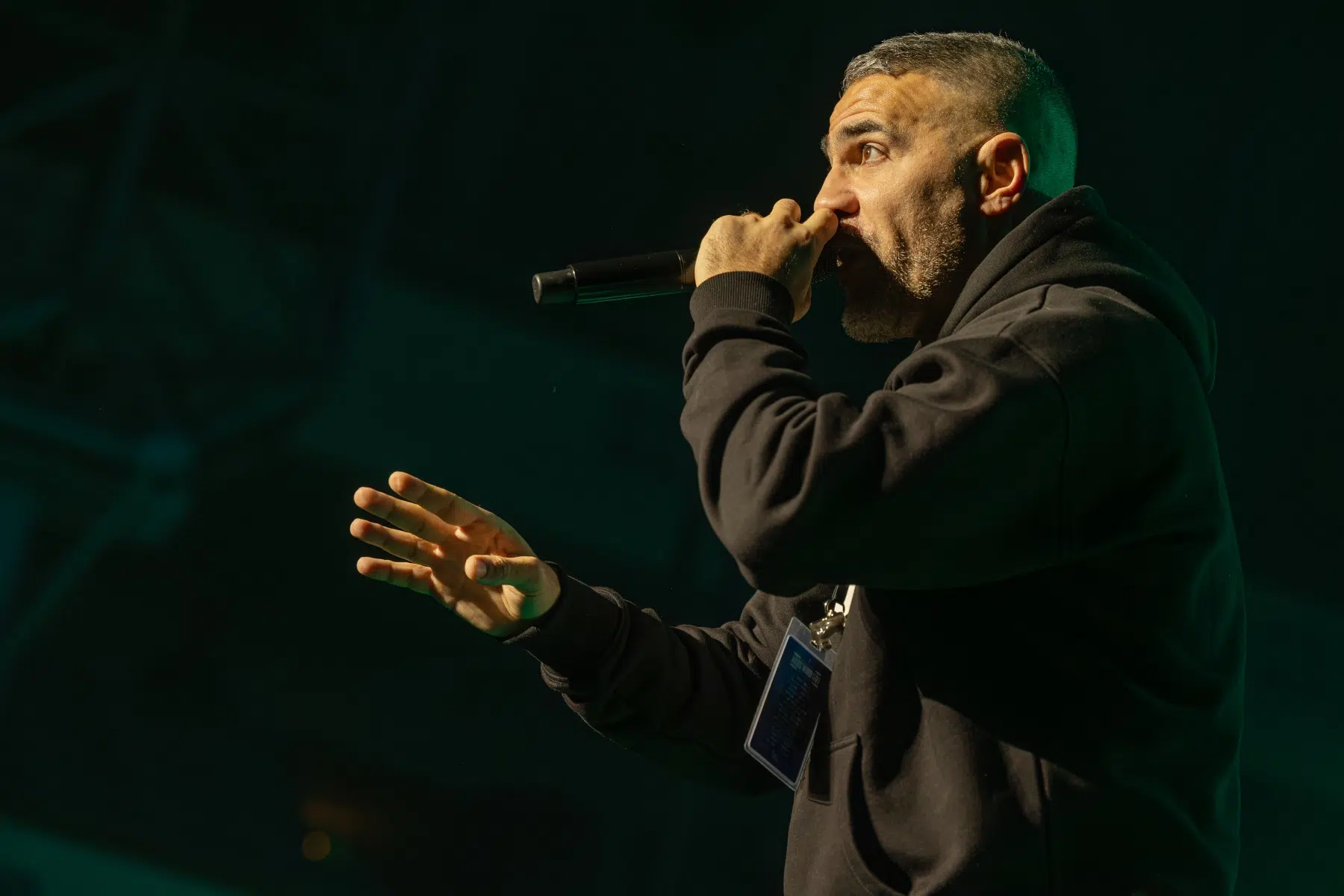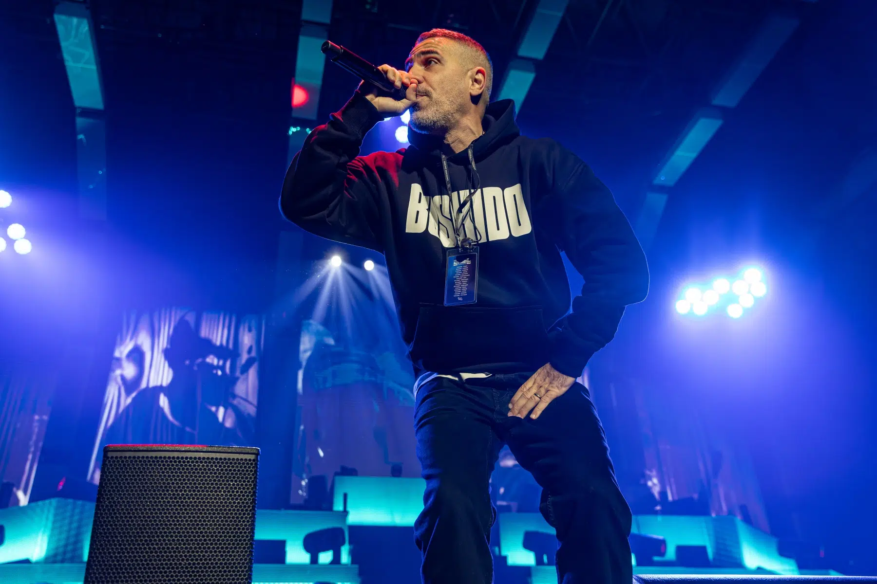 Der Abend beginnt mit einem Augenzwinkern und Symbolkraft: „Kleine Bushidos“ eröffnet das Set und schlägt sofort die Brücke zwischen Herkunft, Legacy und dem Blick zurück. Ohne lange Anlaufphase geht es mit „Wenn wir kommen“ und „Nie wieder“ direkt in die Konfrontation – hart, kompromisslos, laut. Die Halle ist von der ersten Minute an da.