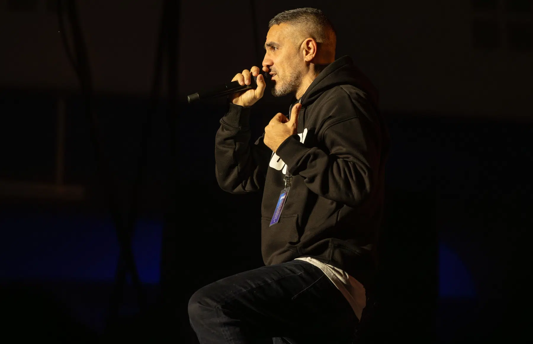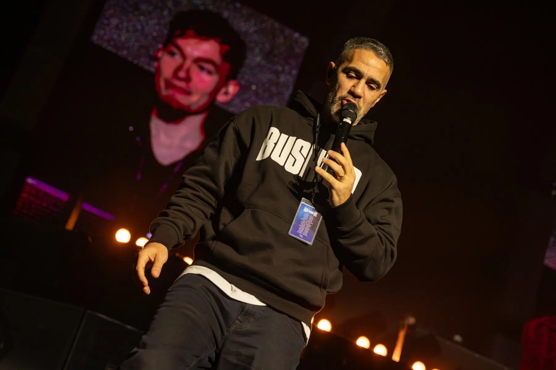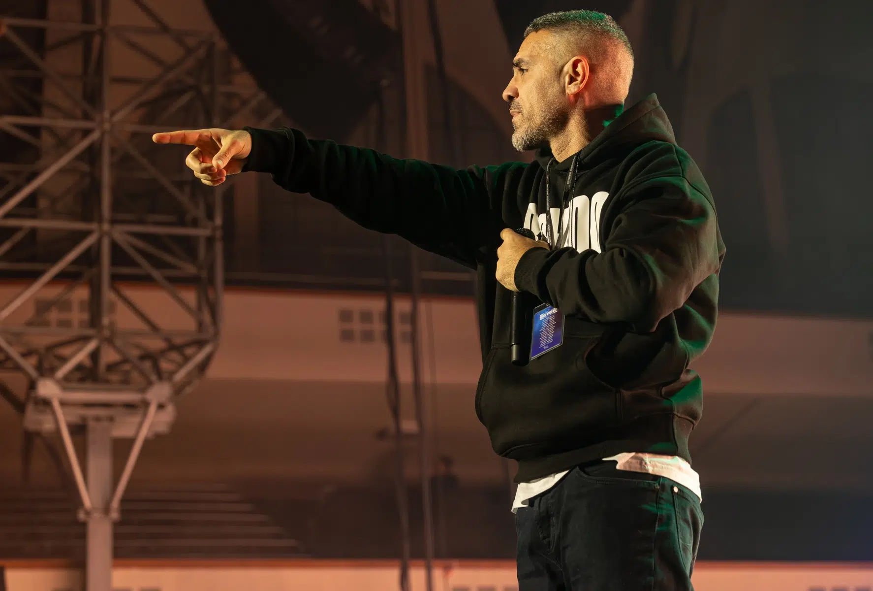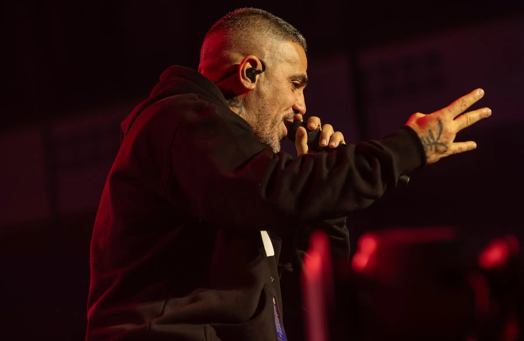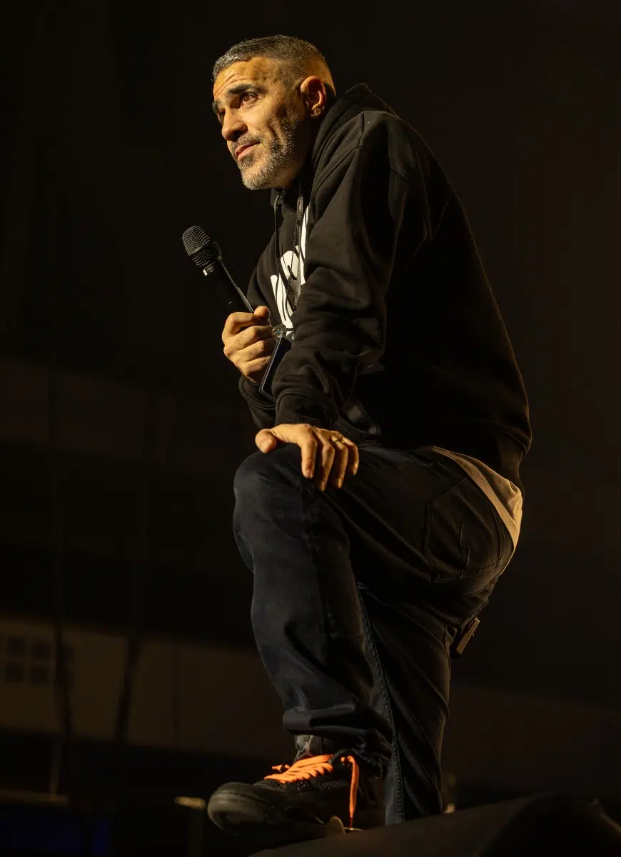Der Abend beginnt mit einem Augenzwinkern und Symbolkraft: „Kleine Bushidos“ eröffnet das Set und schlägt sofort die Brücke zwischen Herkunft, Legacy und dem Blick zurück. Ohne lange Anlaufphase geht es mit „Wenn wir kommen“ und „Nie wieder“ direkt in die Konfrontation – hart, kompromisslos, laut. Die Halle ist von der ersten Minute an da.