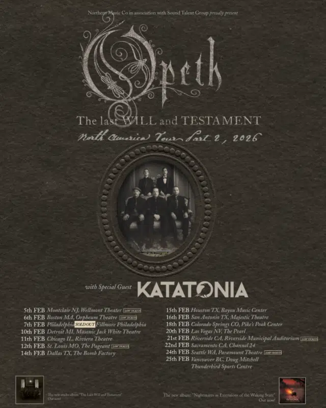 The release arrives ahead of OPETH’s upcoming U.S. tour, which kicks off in two weeks and will see the band bringing the music of “The Last Will and Testament” to stages across the country alongside fan favorites from their storied catalog.