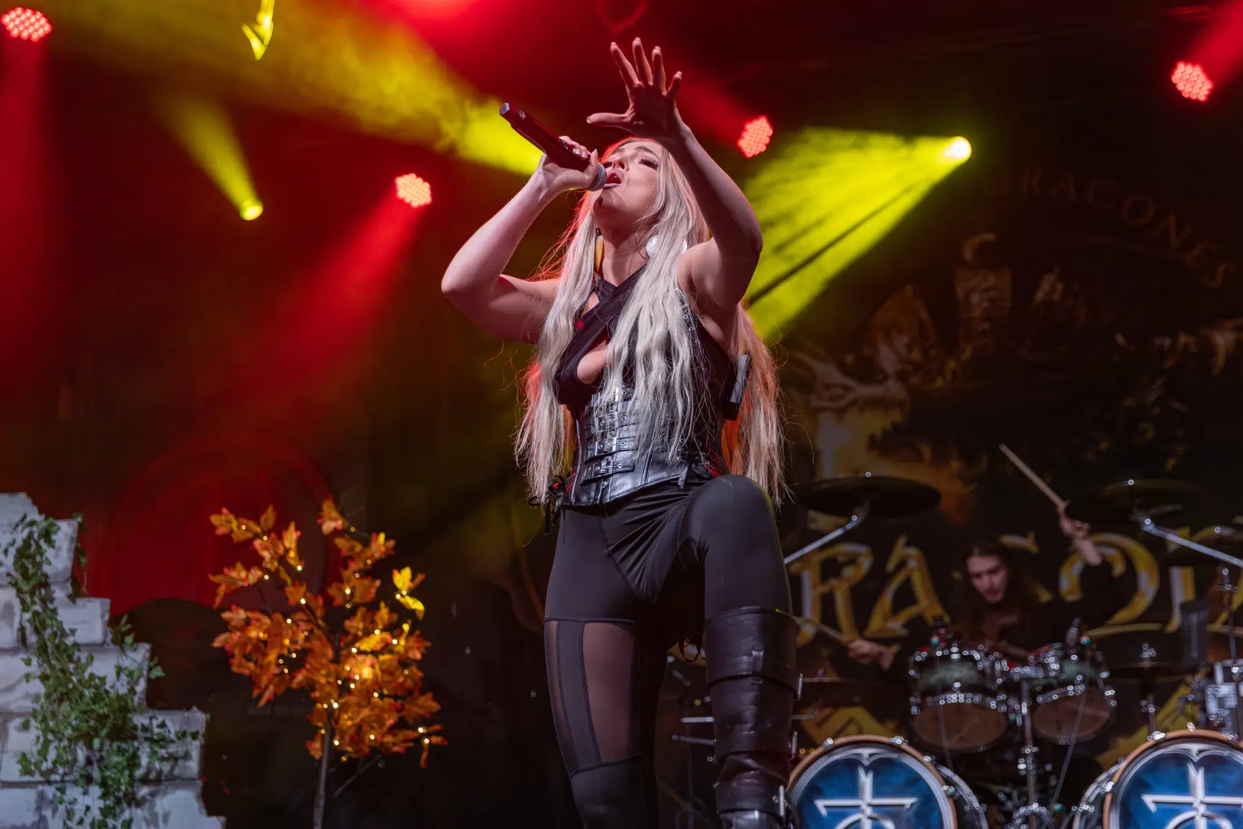 Den Auftakt machten die Österreicher Dragony, die sich von der überschaubaren Zuschauerzahl unbeeindruckt zeigten und ihr episches Power-Metal-Konzept konsequent durchzogen. Mit „Twilight of the Gods“ und „Gods of War“ war sofort klar, wohin die Reise geht: große Melodien, Fantasy-Pathos und ein klarer Fokus auf hymnische Refrains.