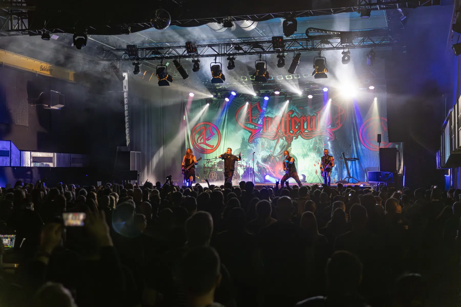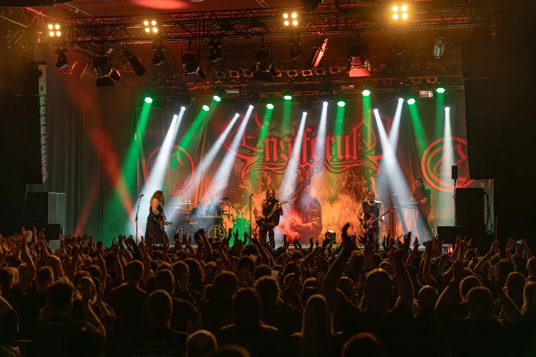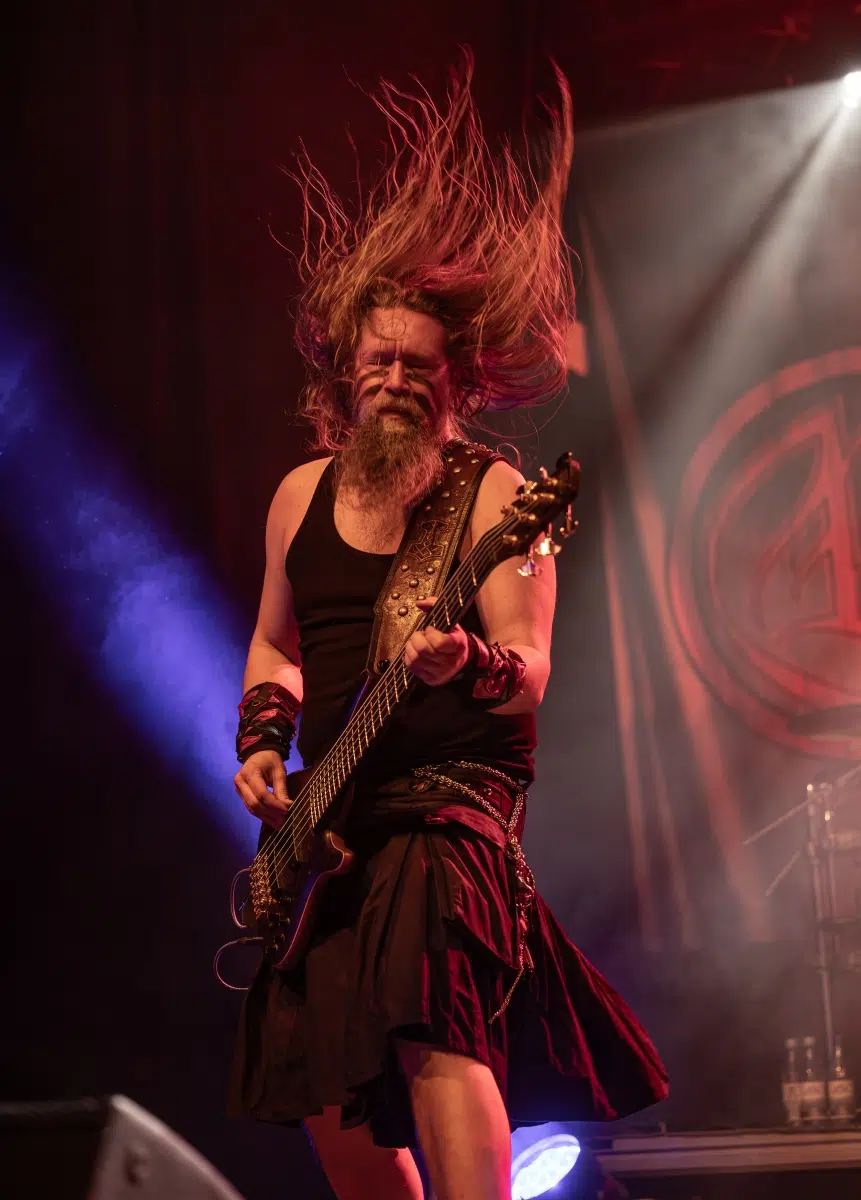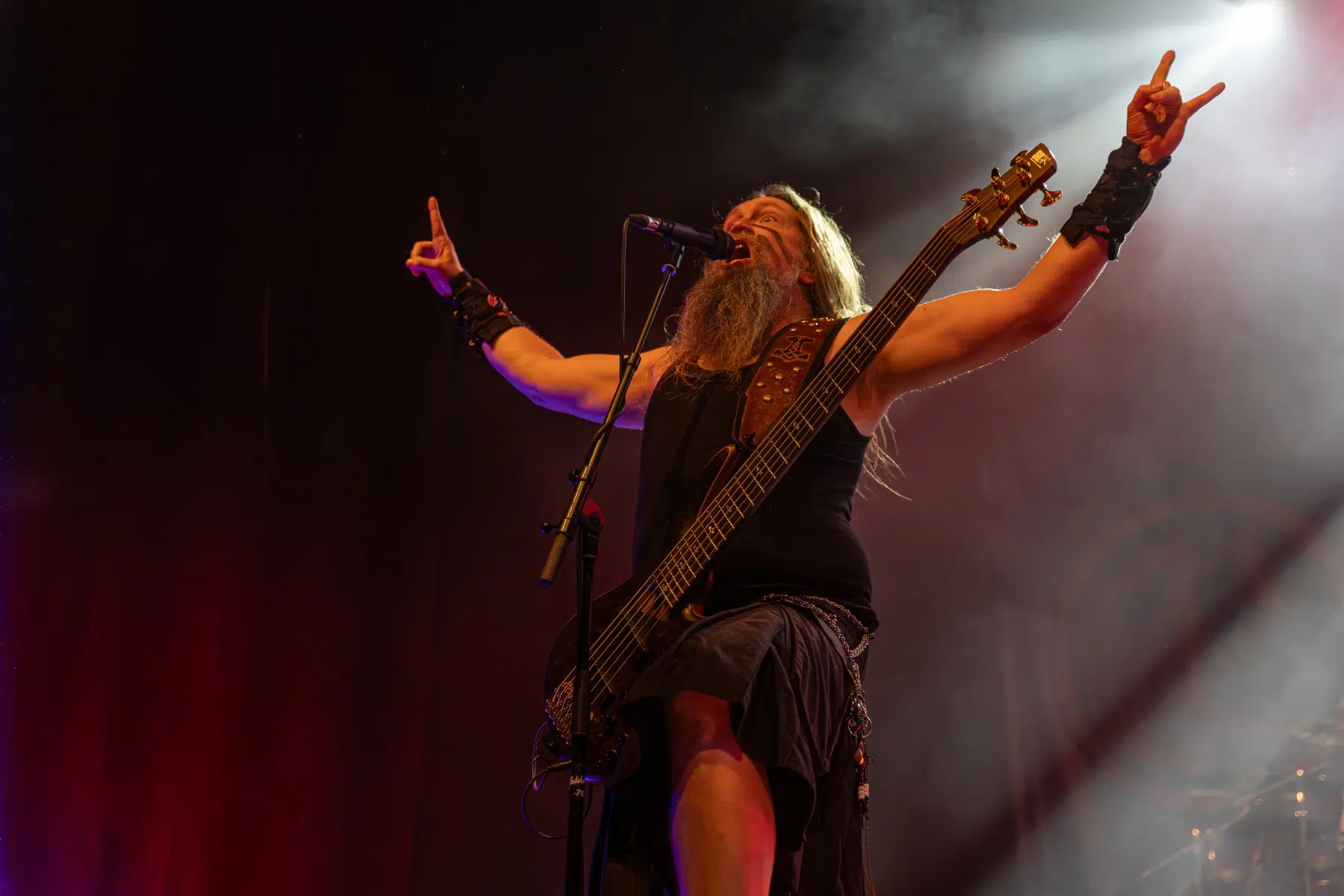 Als Ensiferum schließlich die Bühne betraten, änderte sich die Atmosphäre schlagartig. Mit „Winter Storm Vigilantes“ und „Guardians of Fate“ legten die Finnen einen druckvollen Start hin, der keinen Zweifel an ihrer Headliner-Position ließ. Der Sound war nun deutlich voller, die Lightshow intensiver, die Band hochkonzentriert.