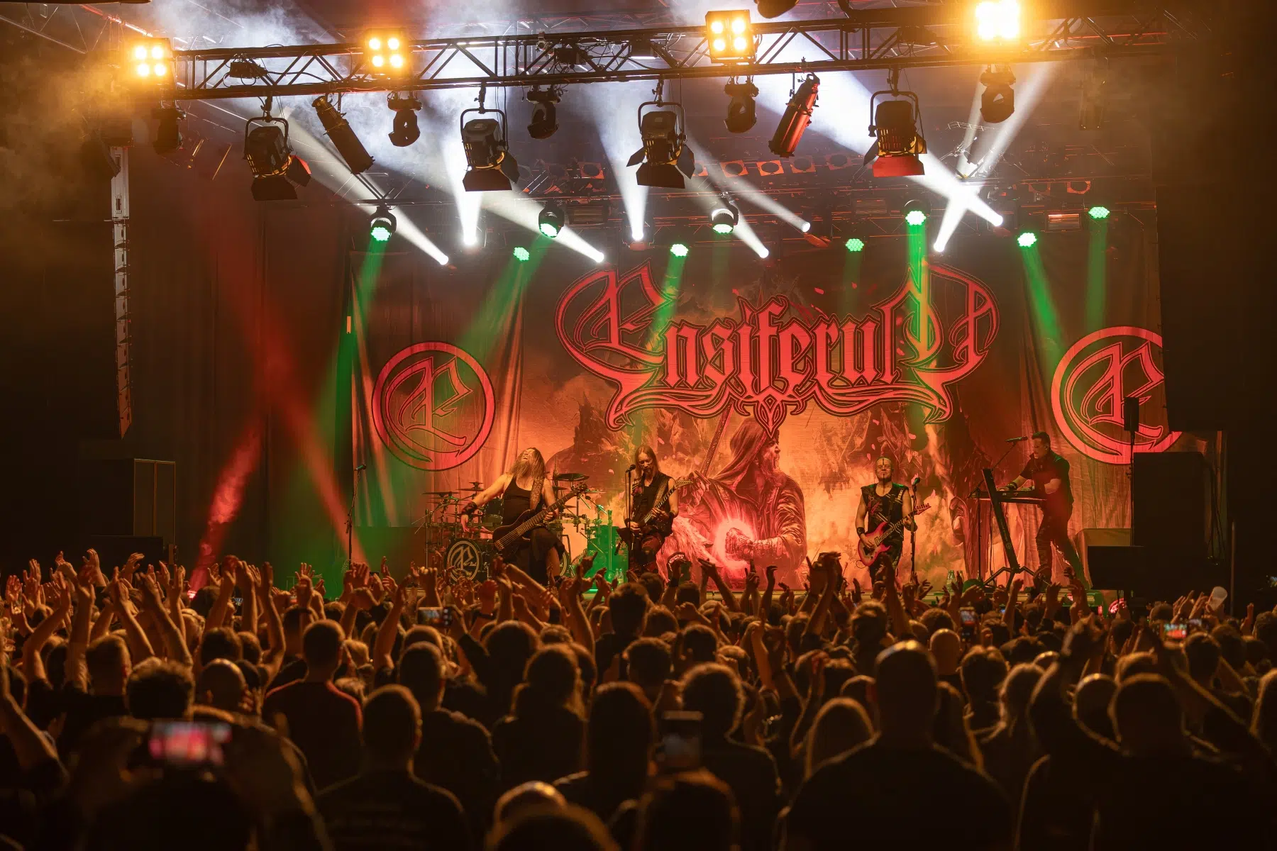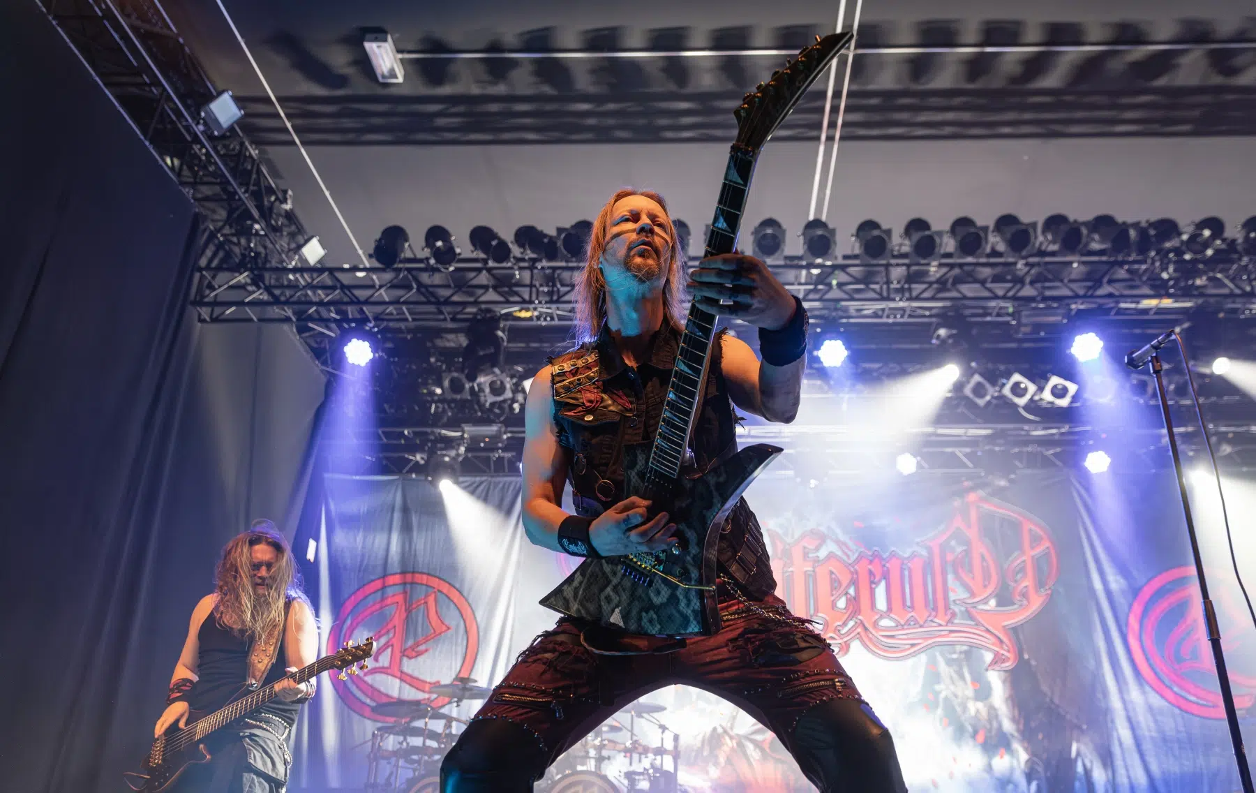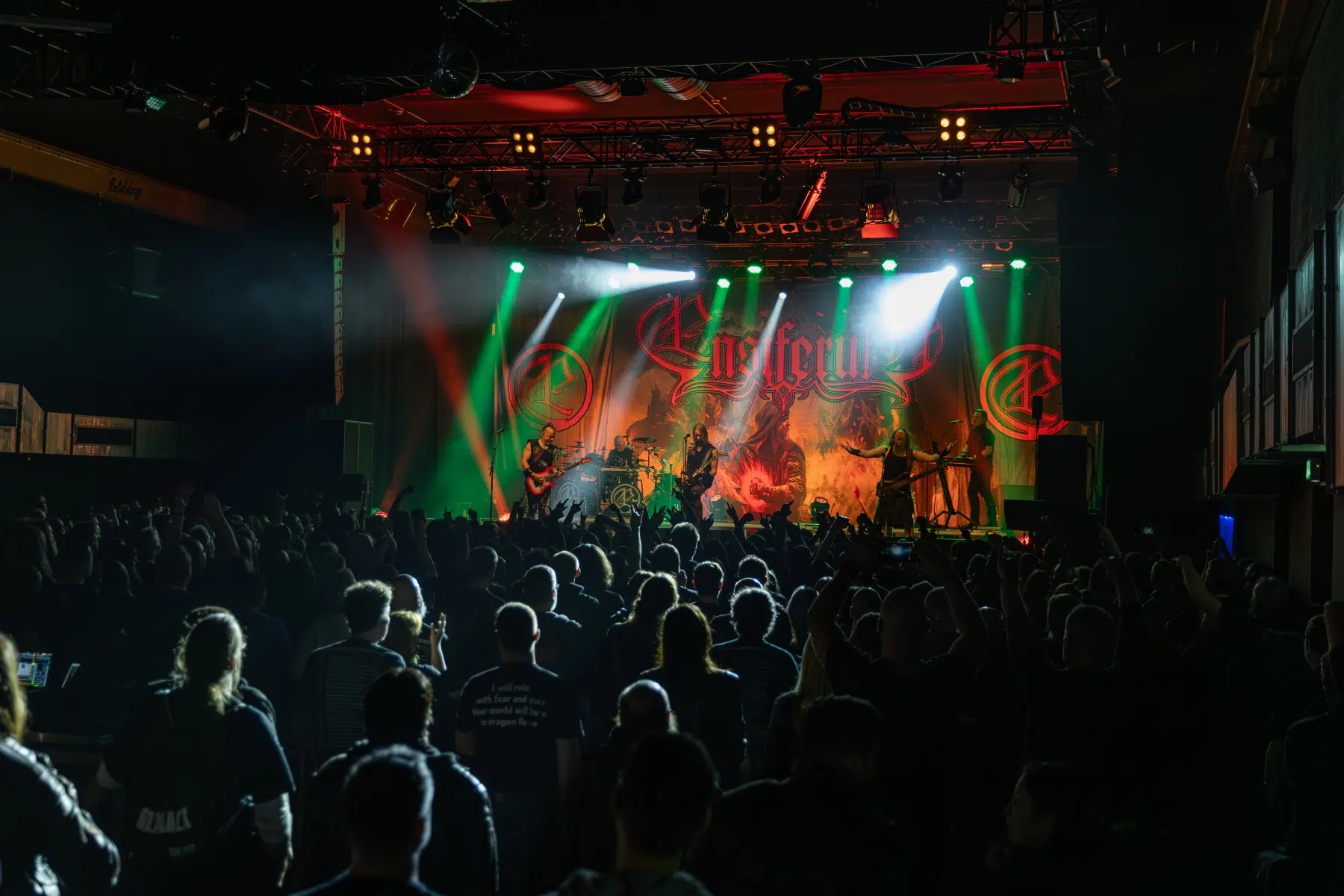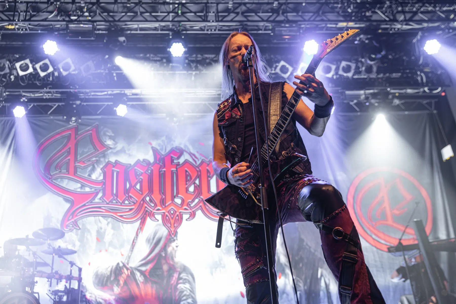 Als Ensiferum schließlich die Bühne betraten, änderte sich die Atmosphäre schlagartig. Mit „Winter Storm Vigilantes“ und „Guardians of Fate“ legten die Finnen einen druckvollen Start hin, der keinen Zweifel an ihrer Headliner-Position ließ. Der Sound war nun deutlich voller, die Lightshow intensiver, die Band hochkonzentriert.