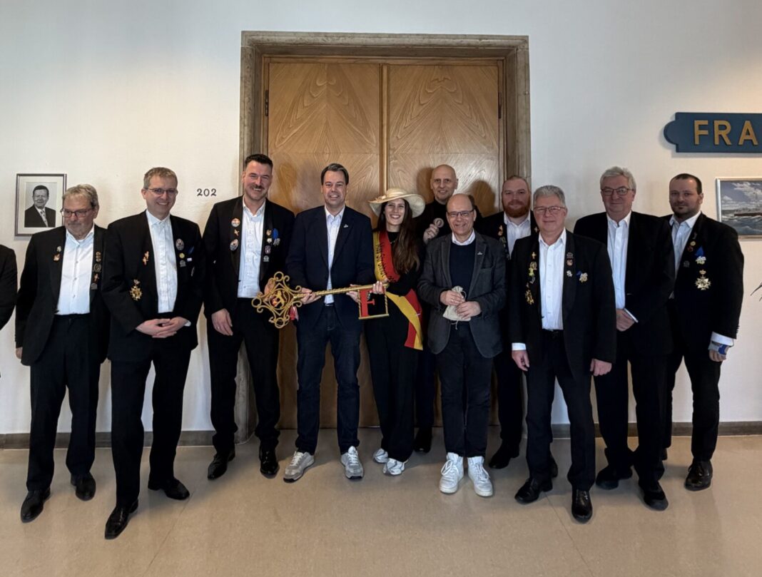 Mit dem traditionellen Heringsessen im Rathaus ist die diesjährige Fastnachtskampagne offiziell zu Ende gegangen. Vertreter des Stadtschlüsselvereins des Frankenthaler Carneval Verein von 1820 e.V. übergaben Oberbürgermeister Dr. Nicolas Meyer und dem Stadtvorstand die Insignien der Macht – Stadtschlüssel, Steuerschraube und Stadtsäckel.