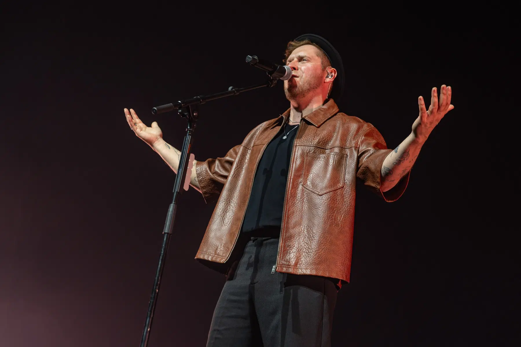 Als Johannes Oerding die Bühne betrat, war die Energie sofort eine andere – größer, aber nicht distanzierter. Mit einem kurzen Snippet von „An guten Tagen“ eröffnete er das Set und leitete über in „Hier gehör ich hin“, das sich wie ein programmatisches Statement für den Abend anfühlte.