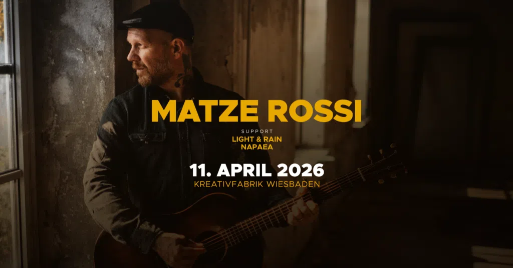 Matze Rossi, bekannt für seine ehrliche, handgemachte Musik, hat sich mit seinem Mix aus Singer-Songwriter-Folk, Indie und Punk in der deutschen Musikszene fest etabliert. Sein einzigartiger Stil verbindet intensive, emotionale Texte mit akustischen Klängen und einem unverwechselbaren Gespür für Melodien. Besonders die Authentizität und Nähe, die seine Musik vermittelt, wird von seinem Publikum geschätzt.