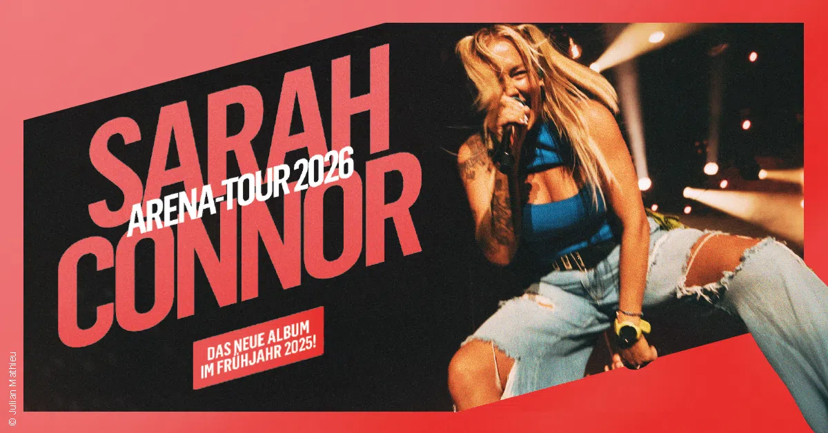 Sarah Connor ist zurück! 2026 wird ein ganz besonderes Jahr für die Sängerin, denn Deutschlands Soul-Queen geht mit ihrem neuen Studioalbum auf große Tournee. Mit ihrer ganz besonderen Energie, ihren Songs und ihrer einmaligen Stimme kehrt sie mit einer neuen Show auf die Bühnen des Landes zurück. Ihre Fans können sich auf emotionale und mitreißende Konzerte freuen, bei denen Sarah Connor mit ihrer kraftvollen Stimme für Gänsehaut-Momente sorgt.